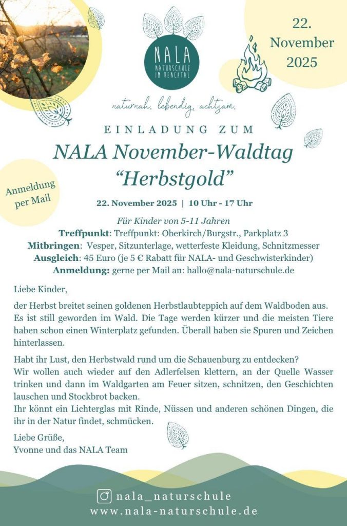 ✉️ Anmeldung gerne per Mail an: hallo@nala-naturschule.de